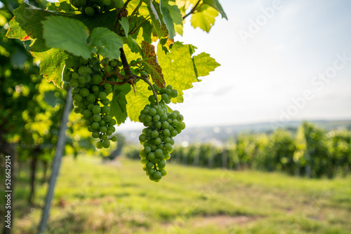 © kraichgaufoto, Fototapeta premium Weißweinreben mit viel copy space rechts