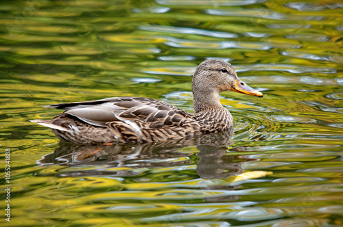 Obraz premium Weibliche Stockente mit detailliertem Federkleid
