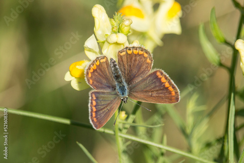 © Aloisia, Obraz premium weiblicher Bläuling auf einer gelben Wildblume