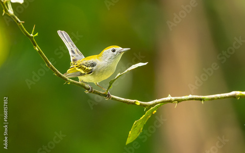 Fototapeta premium weiblicher Gelbscheitel-Waldsänger (Setophaga pensylvanica)