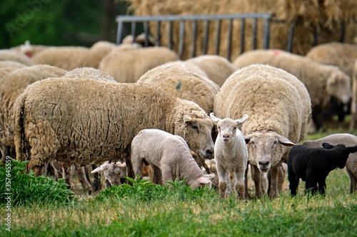 © Michael, Obraz premium Weidende Hausschafe ( Ovis gmelini aries ; früher Ovis aries Linné ).