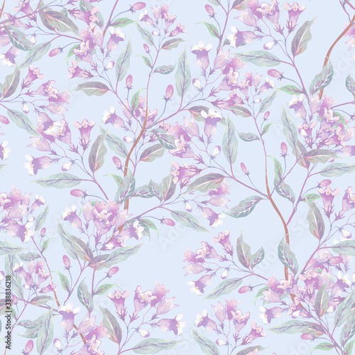 © Marina Grau, Obraz premium Weigela Flowers Seamless Pattern