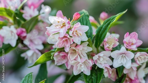 © Emin, Fototapeta premium Weigela with black and white colors