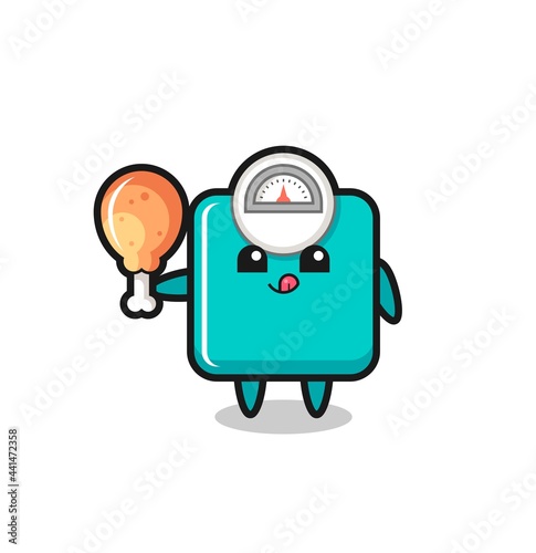 Fototapeta premium weight scale cute mascot is eating a fried chicken