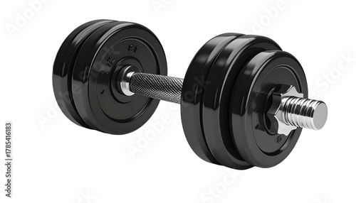 © Hahaha, Naklejka premium Weighted black dumbbell rests, ready for exercise