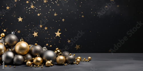 © Marc Kunze, Fototapeta premium Weihnachten Hintergrund. Weihnachtskugeln und dunkler schöner Hintergrund mit Glitzer und platz für Text