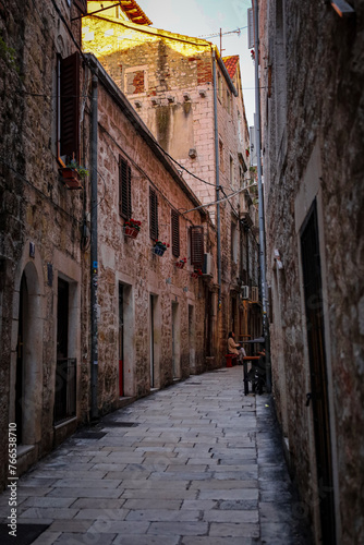 © carolindr18, Fototapeta premium Weihnachtlich geschmückte Gassen und Restaurants in der Altstadt von Split
