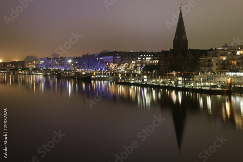 Naklejka premium Weihnachtsmarkt an der Schlachte in Bremen bei Nacht
