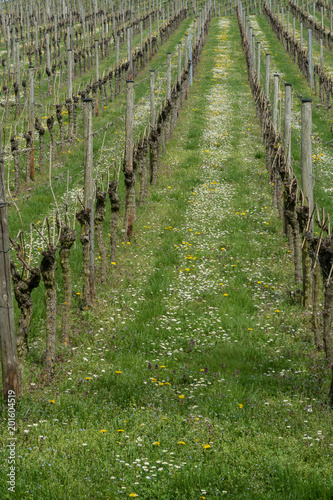 Obraz premium Weinberg mit blühenden Gänseblümchen