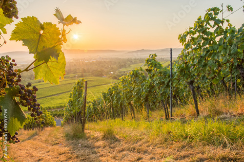 © Bernd Schmidt, Fototapeta premium Weinberg mit Laub und Trauben