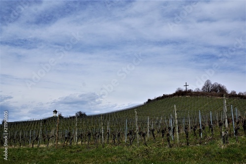 Fototapeta premium Weinberge in auf einem Wanderweg zwischen Hagnau und Meersburg am Bodensee