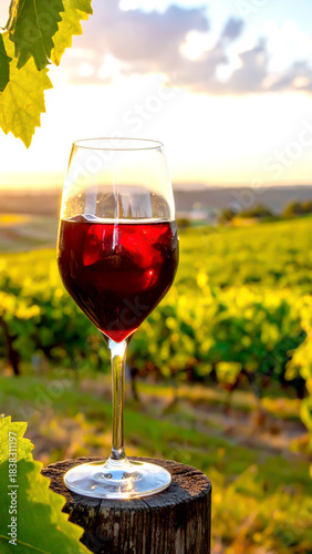 © Sina Ettmer, Obraz premium Weinglas in Weinbergen