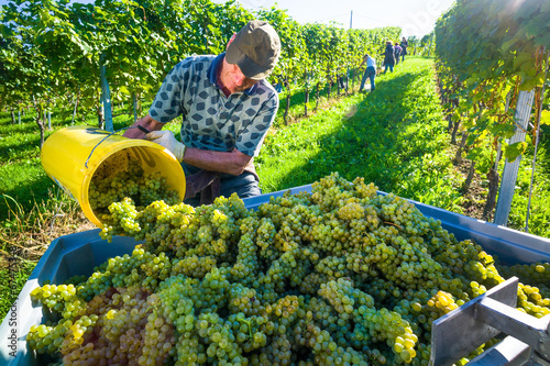 © Gina Sanders, Obraz premium Weinlese im Weingarten