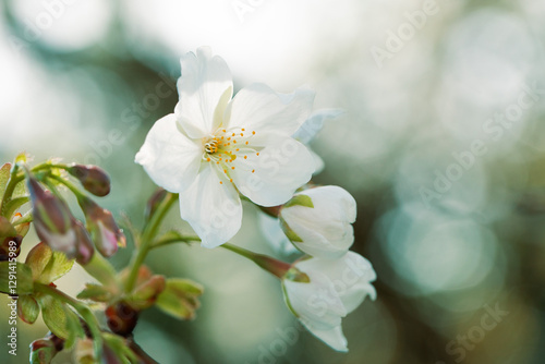 © Werk 9, Fototapeta premium Weisse Apfelbaum-Blüten an einem Ast