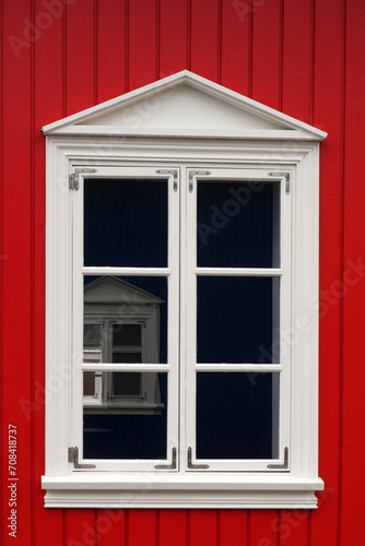 © Markus Kammermann, Fototapeta premium Weisses Fenster in einer roten Wellblechwand
