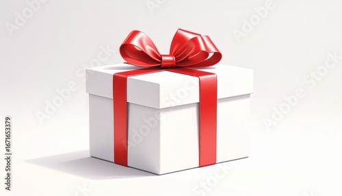 © yuttapoom, Obraz premium Weisses Geschenk mit roter Schleife