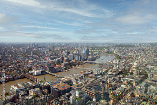 Obraz premium Weitläufige Aussicht auf die Stadt und den Fluss Themse mit mehreren Brücken und Gebäuden in London, Vereinigte Königreich Großbritannien
