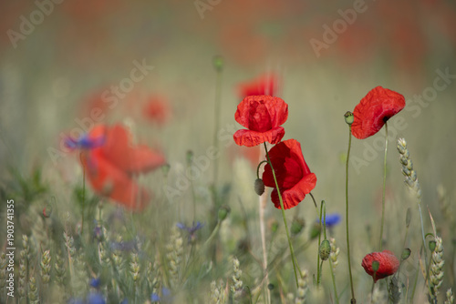 Fototapeta premium Weitläufiges Feld mit blühendem Klatschmohn und großzügigem Copyspace für...