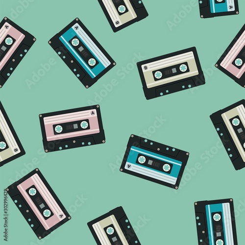 © FreeSoulProduction, Fototapeta premium wektor bezszwowe tło kasety audio