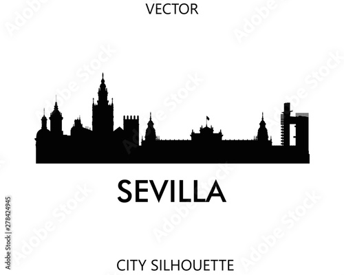 Fototapeta premium Wektor sylwetka panoramę Sewilli znanych miejsc