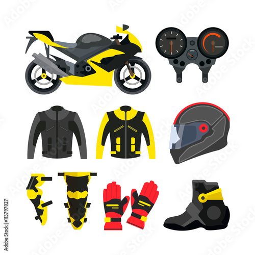 Fototapeta premium Wektor zestaw akcesoriów motocyklowych. Elementy projektu i ikony na białym tle.