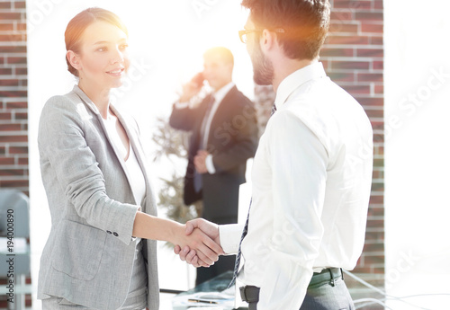 Obraz premium welcome and handshake business partners