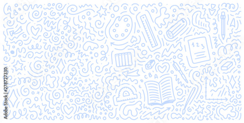 Obraz premium Welcome back to school doodle background. Template for sale banner. Hand...