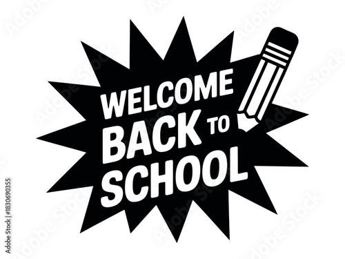 © Sana, Fototapeta premium Welcome back to school text with pencil in burst shape design
