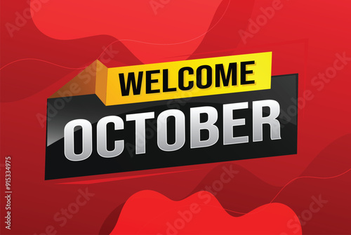 Fototapeta premium welcome October word text concept icon logo sign symbol vector note 3d style for use landing page, template, social media, web, mobile app, poster, banner, flyer, background, gift card, coupon