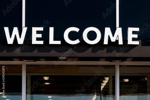 Obraz premium Welcome sign banner above business entrance