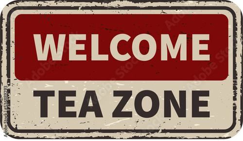Fototapeta premium Welcome tea zone vintage rusty metal sign
