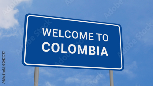 Obraz premium Welcome to Colombia Road Sign on Clear Blue Sky