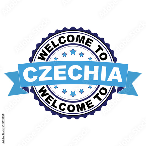 © pe3check, Obraz premium Welcome to Czechia blue black rubber stamp illustration vector on white background