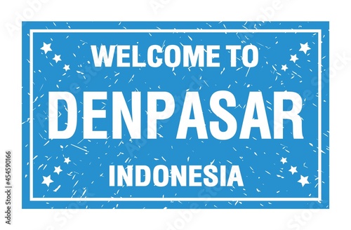 Fototapeta premium WELCOME TO DENPASAR - INDONESIA, words written on blue rectangle stamp