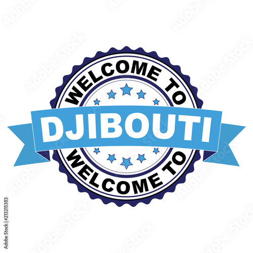 Obraz premium Welcome to Djibouti blue black rubber stamp illustration vector on white...