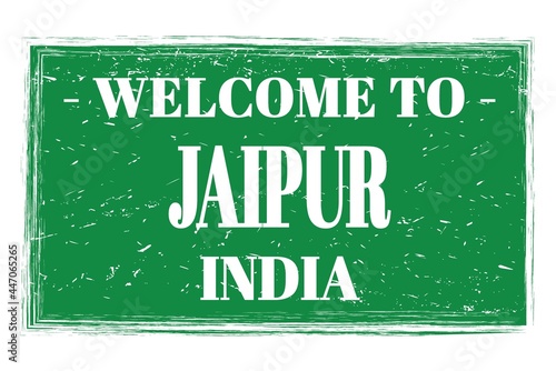 Fototapeta premium WELCOME TO JAIPUR - INDIA, words written on green stamp