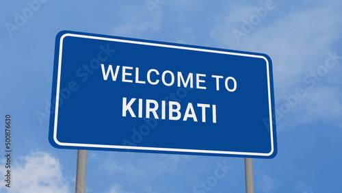 Obraz premium Welcome to Kiribati Road Sign on Clear Blue Sky