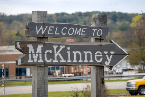 Obraz premium Welcome to McKinney Texas Wooden Sign with Rustic Charm and Southern Hospitality in United States
