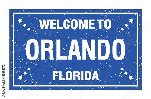 Fototapeta premium WELCOME TO ORLANDO - FLORIDA, words written on light blue rectangle stamp