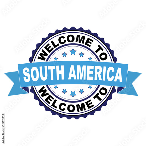 Obraz premium Welcome to South America blue black rubber stamp illustration vector on white...