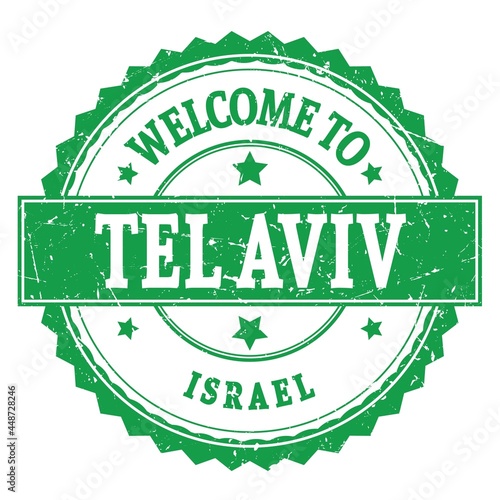 Obraz premium WELCOME TO TEL AVIV - ISRAEL, words written on green stamp