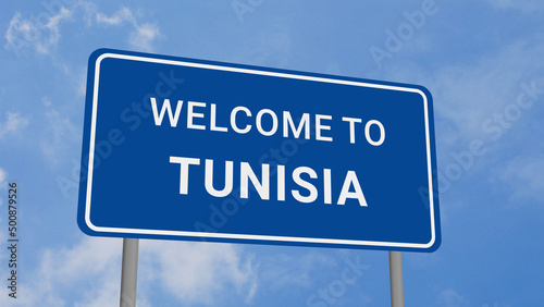Obraz premium Welcome to Tunisia Road Sign on Clear Blue Sky