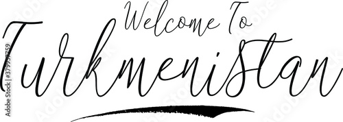 Fototapeta premium Welcome To Turkmenistan Country Name Handwritten Typography Black Color Text...