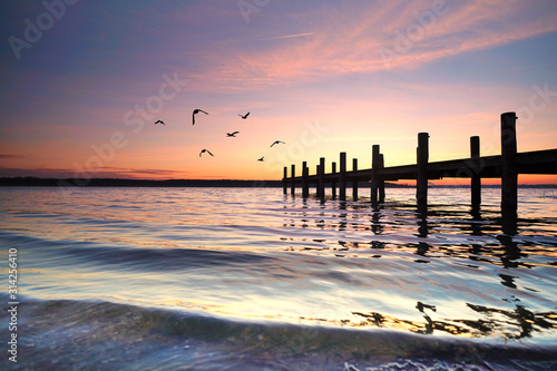 © Jenny Sturm, Naklejka premium Wellen am Holzsteg