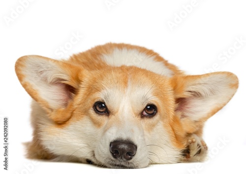 Fototapeta premium Welsh Corgi Pembroke Dog Isolated on White Background in studio