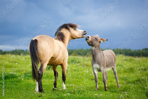 Obraz premium welsh pony and gray donkey
