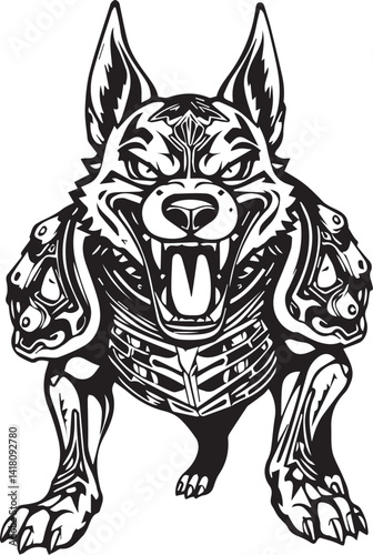© Михаил Н, Obraz premium Werewolf in armour. Hand drawn vector illustration
