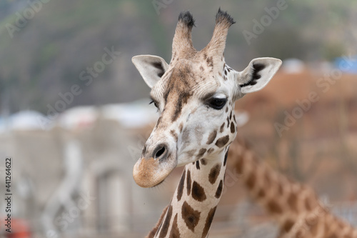 Naklejka premium West African giraffe - Giraffa camelopardalis peralta - close up view on...