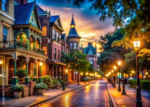 © Danicha, Naklejka premium West End Historic District Charm: Bokeh Night Photography