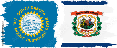 © gladder, Fototapeta premium West Virginia and South Dakota states grunge brush flags connection, vector